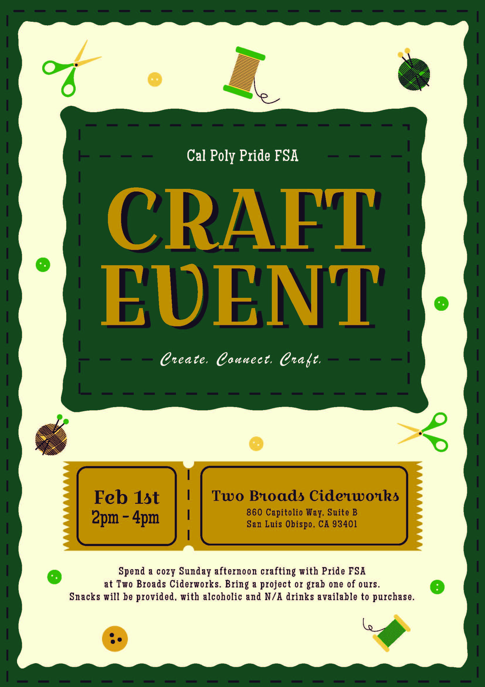 What: Bring a craft or pick up one of ours! We'll also bring snacks, and there are alcoholic and non-alcoholic drinks for purchase.